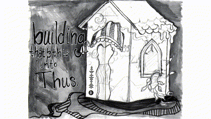 We build this home (and this friendship in one another) in response to the ostracizing of neurodivergence that has tinged Ernie, and a lifetime of poverty and homelessness with which I struggle. Together we make a full person, where we dole out the love once denied one another and construct safety and understanding together: Building thatandthis into Thus.