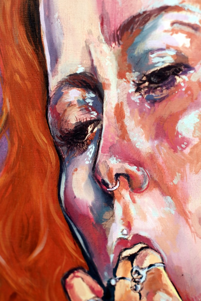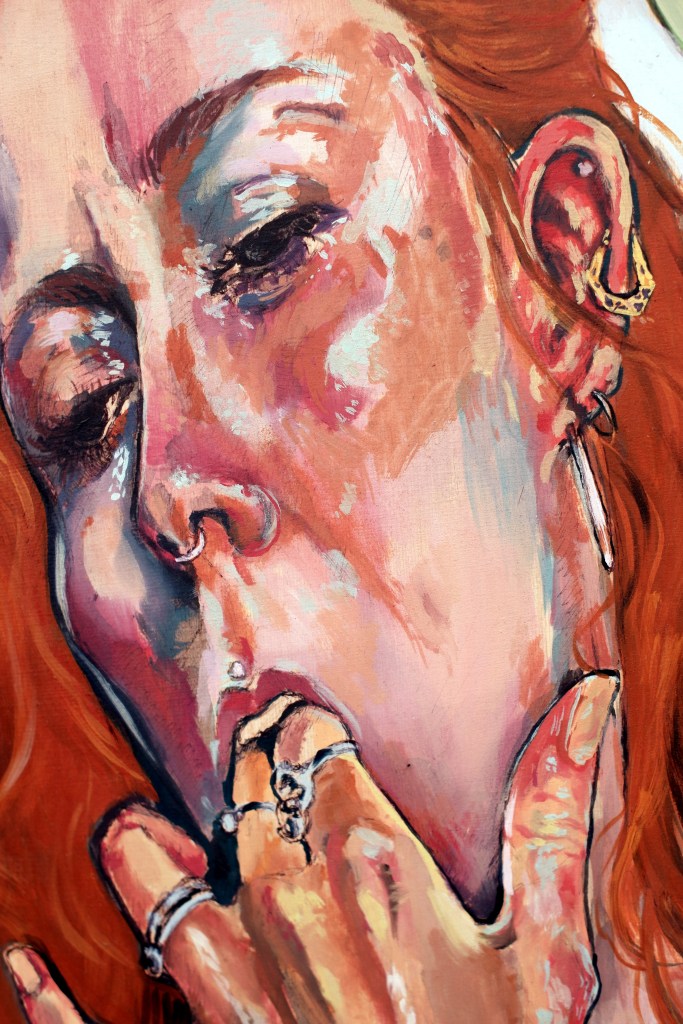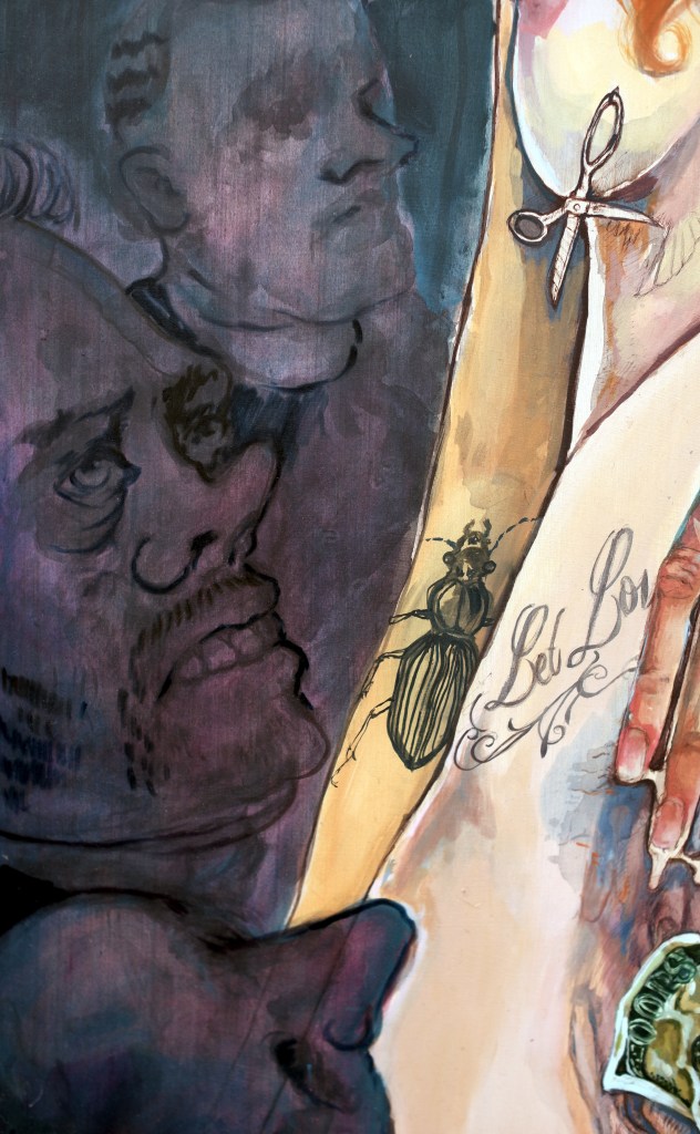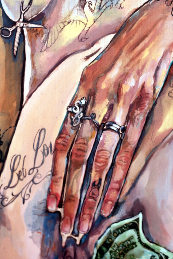 2025, 24” x 48”, oil acrylic, ballpoint pen on recycled material panel.